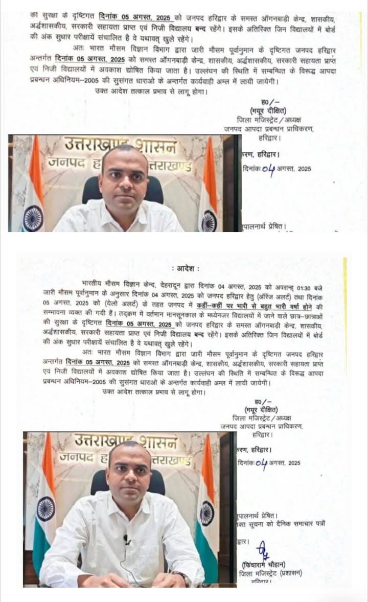 जिलाधिकारी का आदेश जारी, कल मंगलवार को हरिद्वार में सभी स्कूलों की रहेगी छुट्टी, क्या है कारण : पढ़ें पूरी खबर